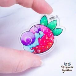 Strawberry Snail | Holographic Acrylic Keychain(Strawberry Ssnail Holographic Acrylic Keychain)