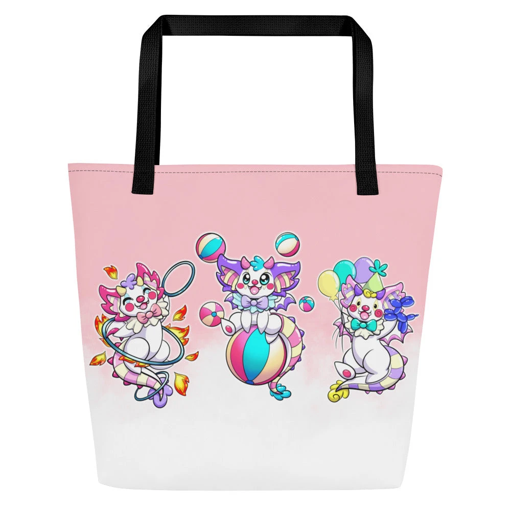 A trendy all around tote bag, where you can put everything that matters for your errands. Shipping packages, shopping for groceries or going to the beach now became super sweet with the help of these adorable Circus Dragon Brothers!