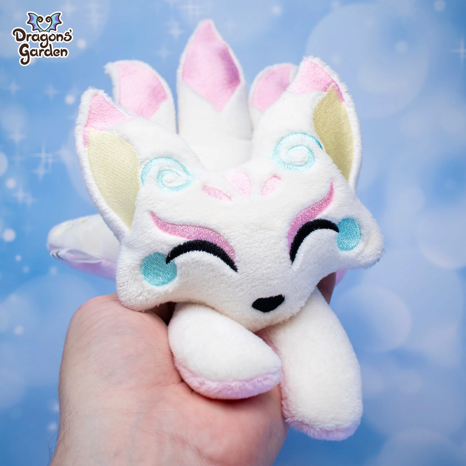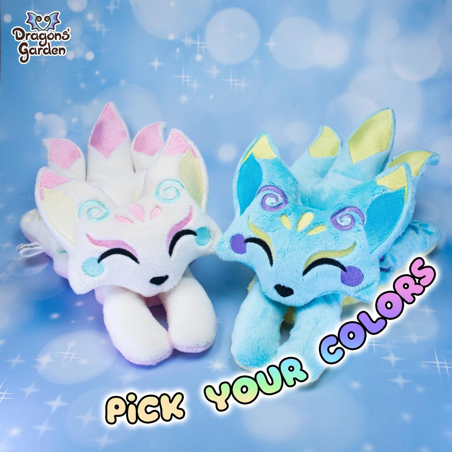 Meet the Inari Kitsune Fox, a magical friend inspired by Japanese folklore, ready to bring a dash of enchantment to your space. With its sweet smile, swirling details, and soft fluffy tails, this cuddly companion will charm its way into your heart!