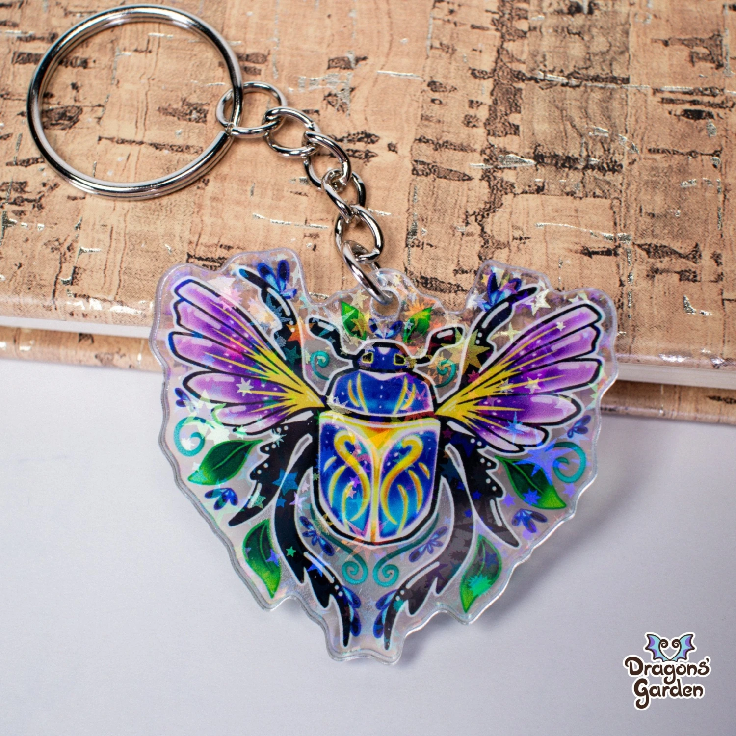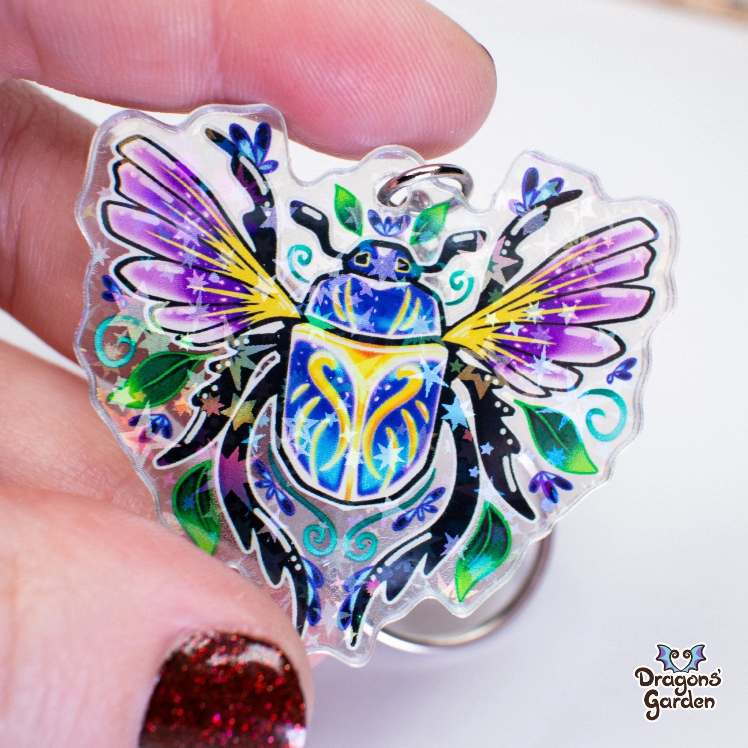 These double-sided, elegant Scarab Beetle Acrylic Keychains are the perfect bling for any charm collection!