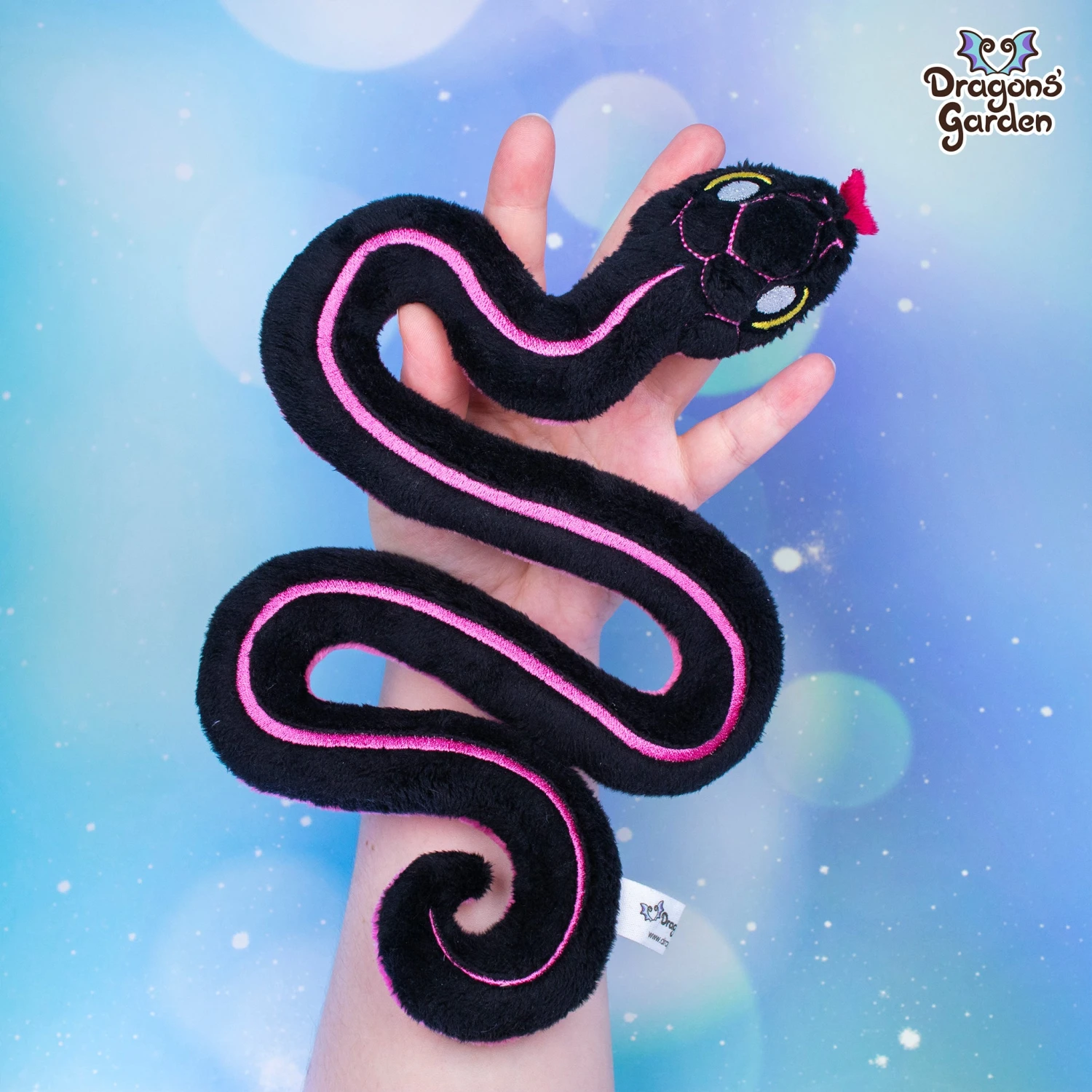 My vibrant colors are inspired by real garter snakes, with bold stripes and curious eyes that make me stand out. I’m stuffed with soft fluff, perfect for slithering into cozy naps or dramatic desk poses.