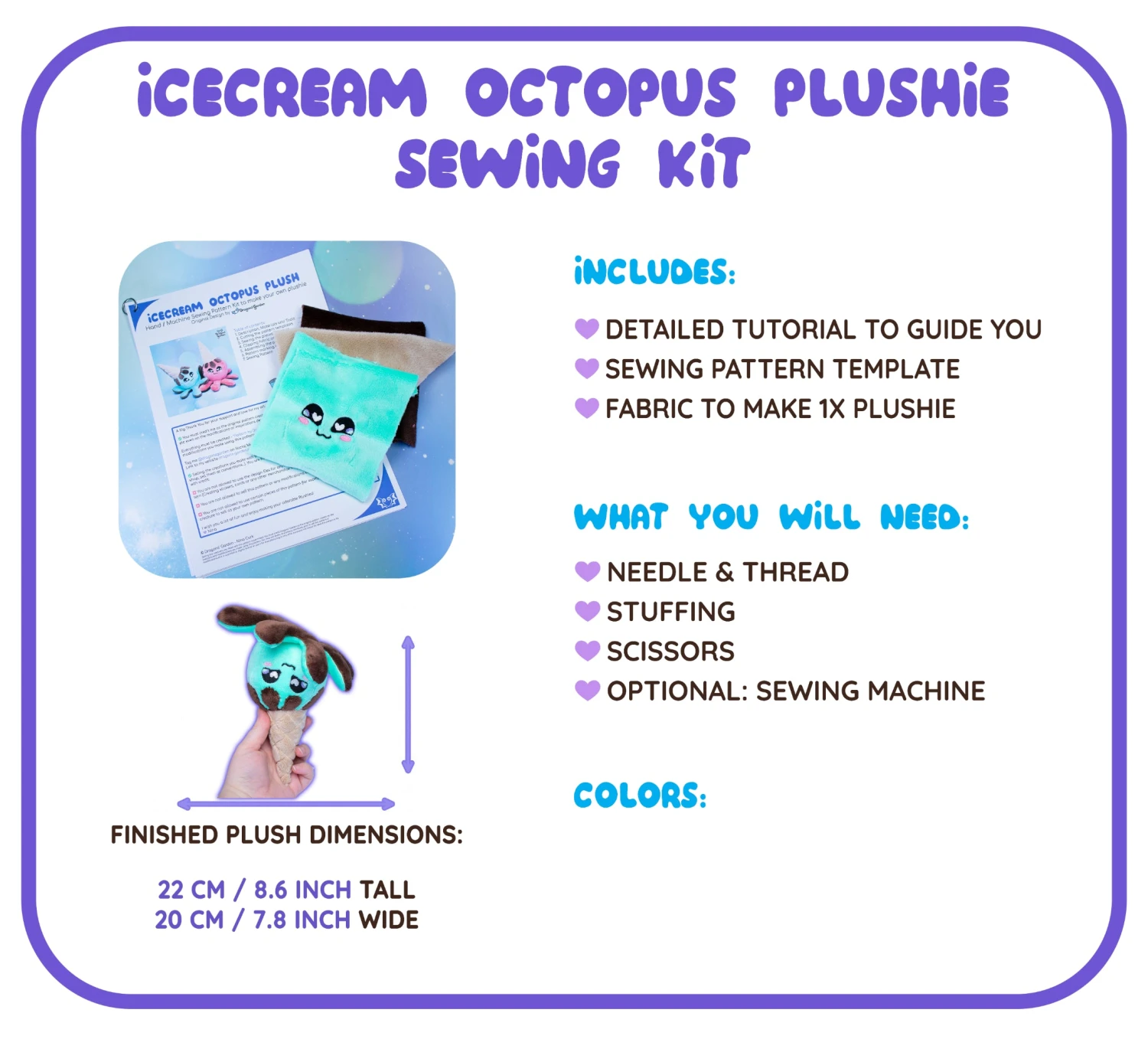 With this adorable Icecream Octopus Sewing Kit will get to create your own plushie. They are the perfect beginner sewing pattern! 🐙🍧🍓
