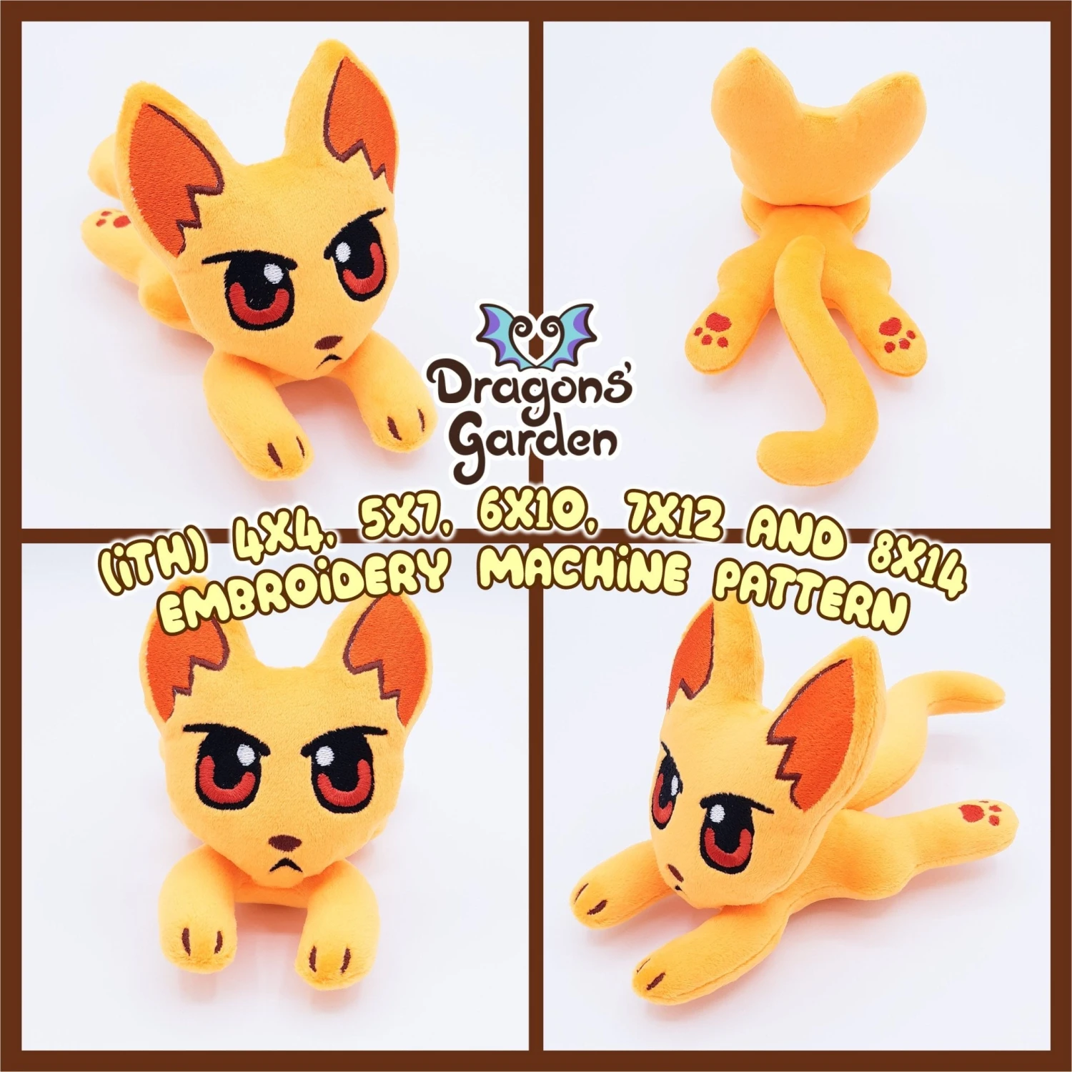 Incredibly Cute Cat plushie Pattern, In the Hoop Embroidery Machine Pattern, based on Dragons’ Garden Original design. 💜