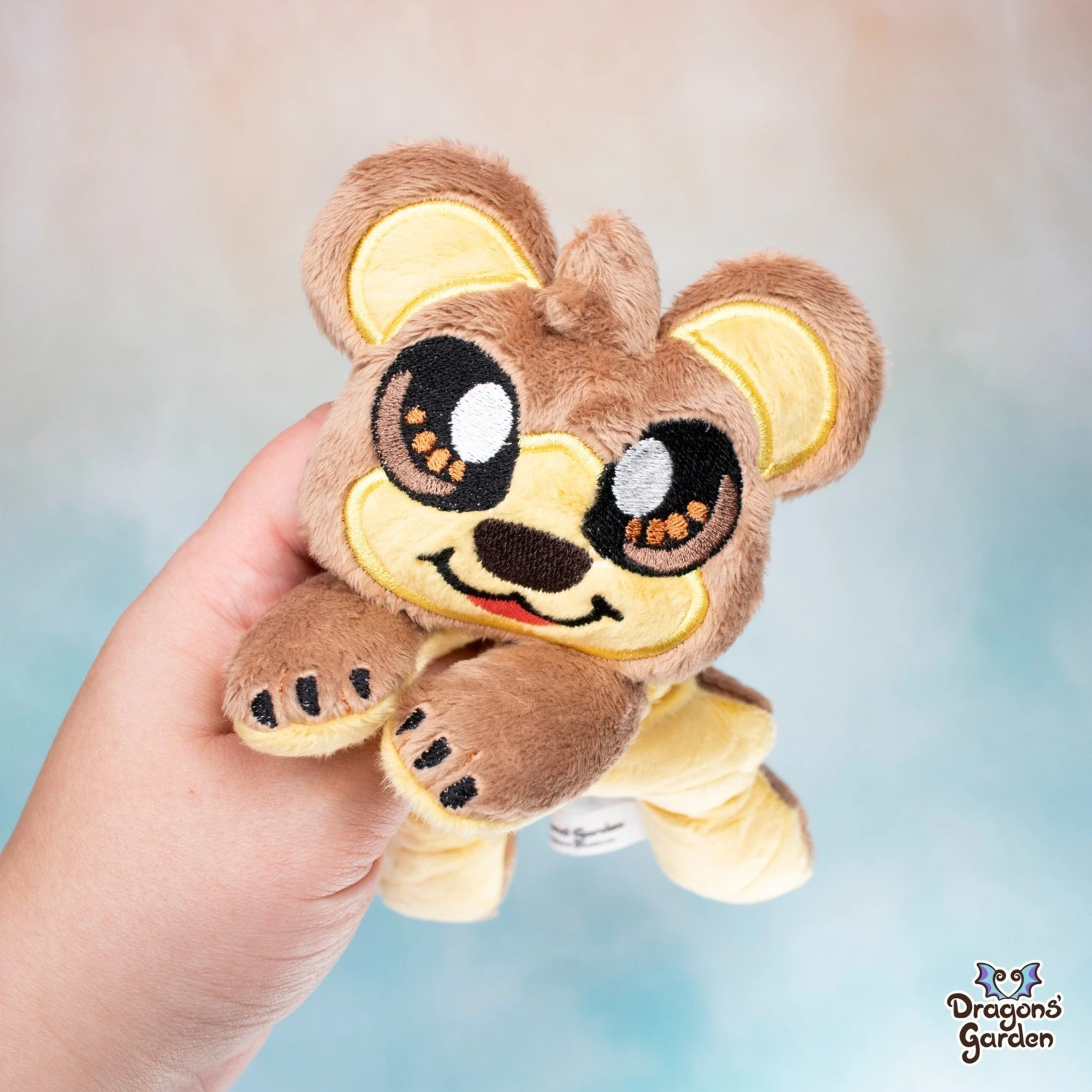 - 4×4 – 6cm (2.3 in) tall from bottom to tip of the ears and 9cm (3.5 in) long from front legs to the tip of the tail.