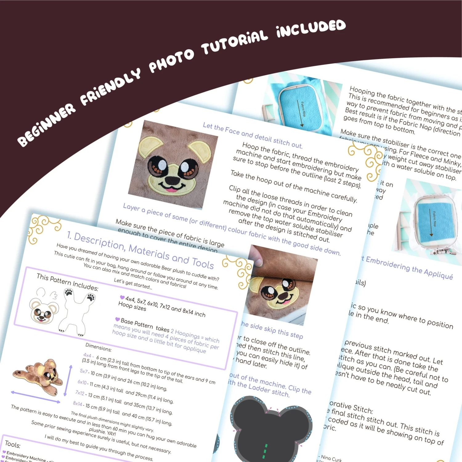 Incredibly Cute Bear plushie Pattern, In the Hoop Embroidery Machine Pattern, based on Dragons’ Garden original design. 🐻💜