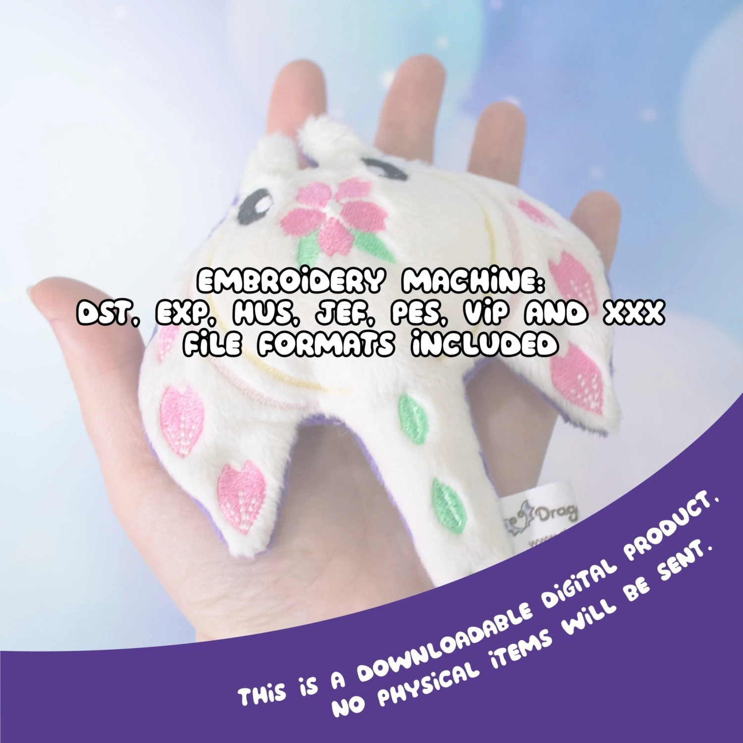 - DST, EXP, HUS, JEF, PES, VIP, XXX Embroidery files in a ZIP format (Feel free to contact me for a different file format)