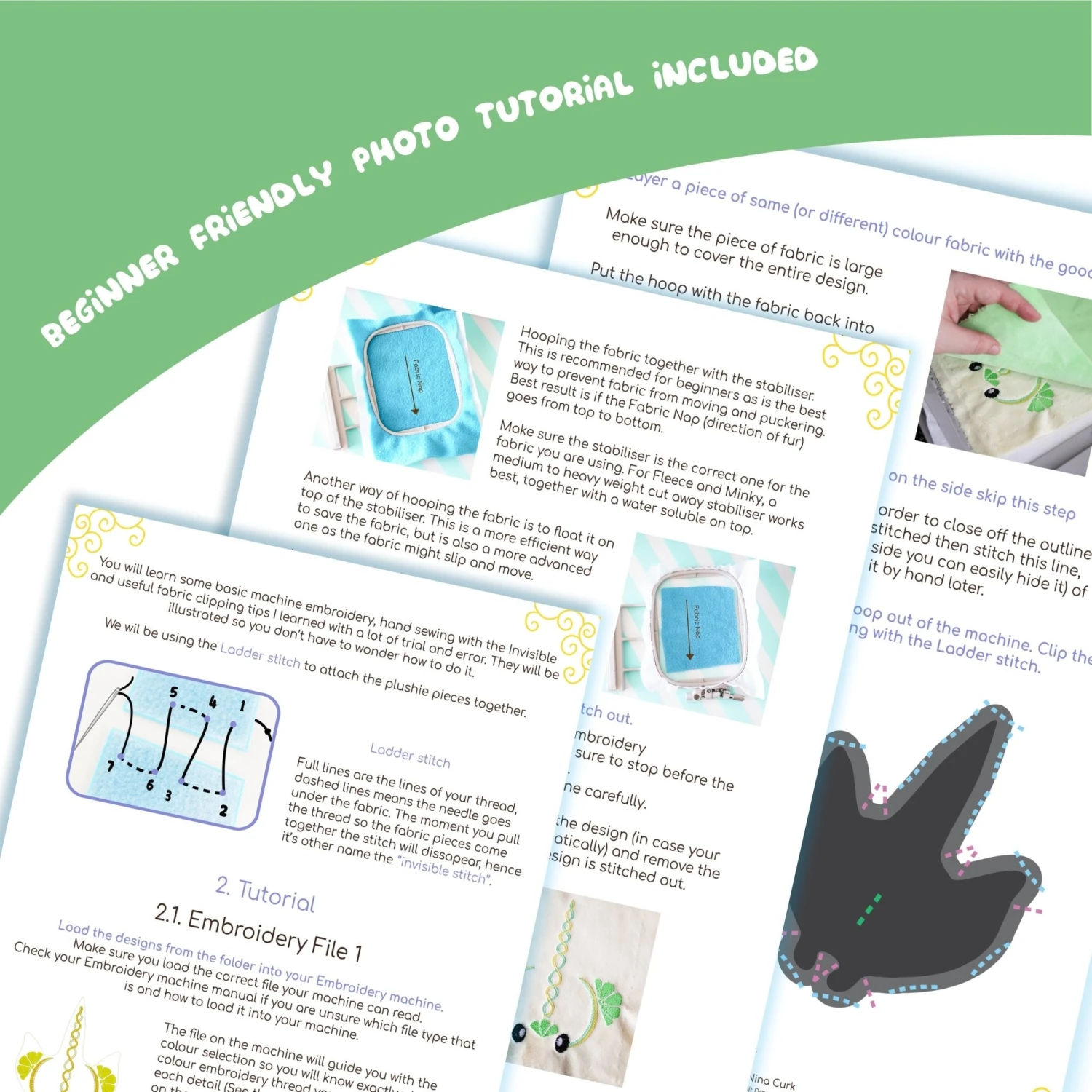 - 4×4 (as photo) – Dimensions of the finished plushie are 10 cm (4 in) long from tail to head.