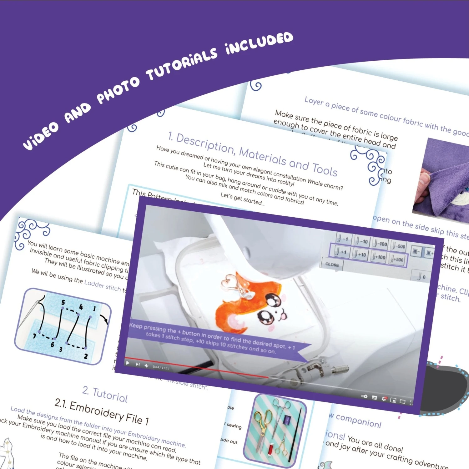 The most Elegant Cosmic Whale 4×4 In the Hoop Embroidery Machine Pattern, based on Dragons’ Garden original design. Create your own Keychain or Charm, just add a ribbon and a clasp and you are set. See the video tutorial on our YouTube channel: https://youtu.be/m0zAfPv4ojE
