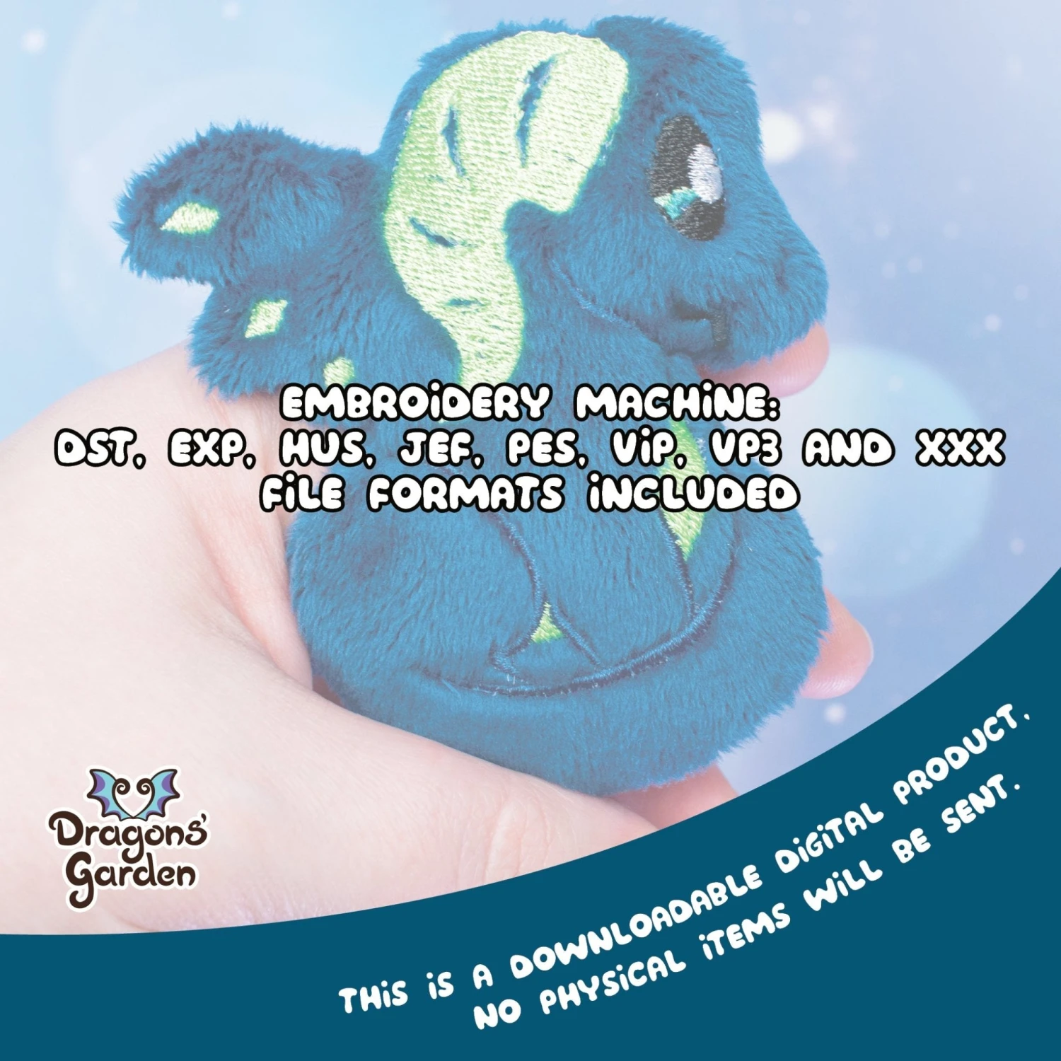 The pattern comes in 1 size, for 4×4 hoops and DST, EXP, HUS, JEF, PES, VIP, VP3, XXX Embroidery files.