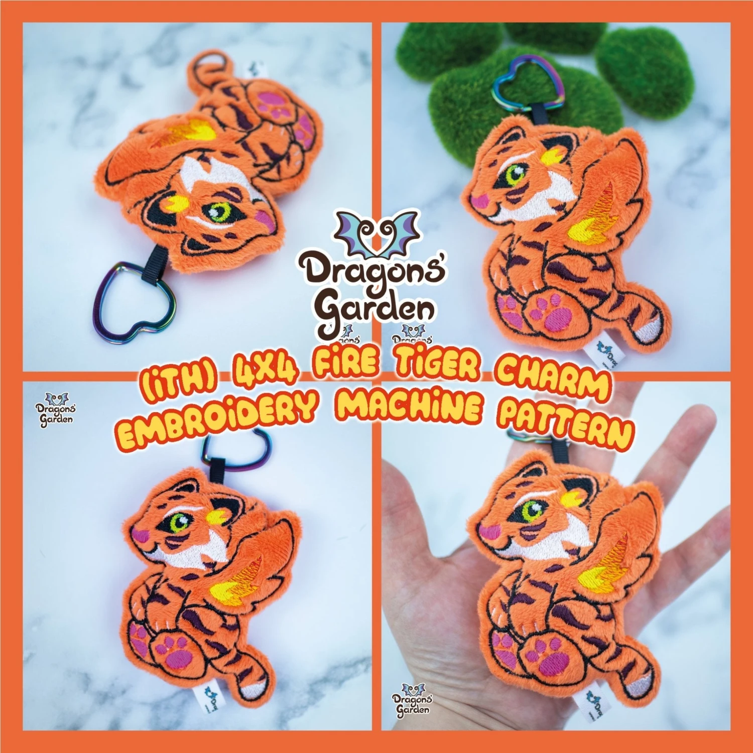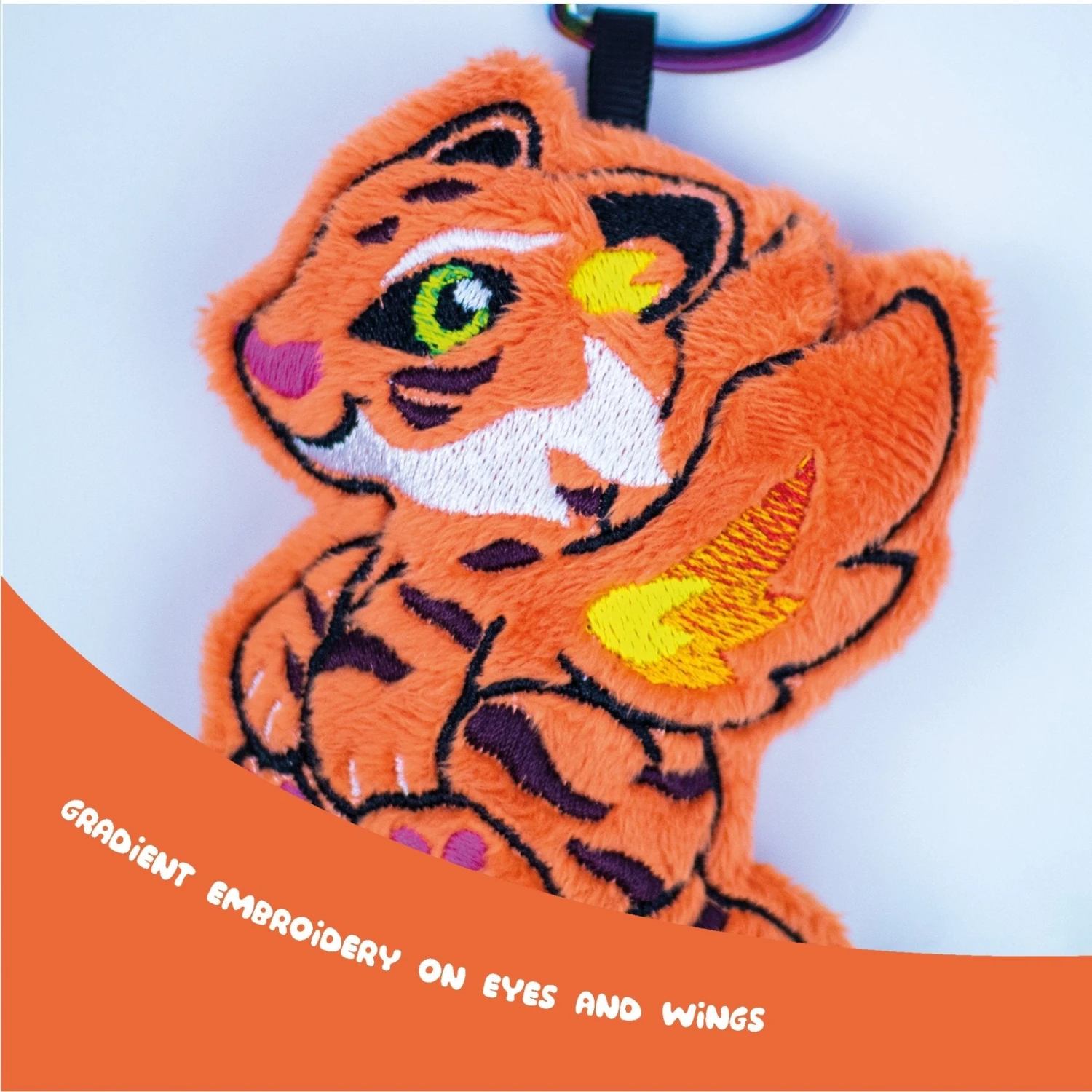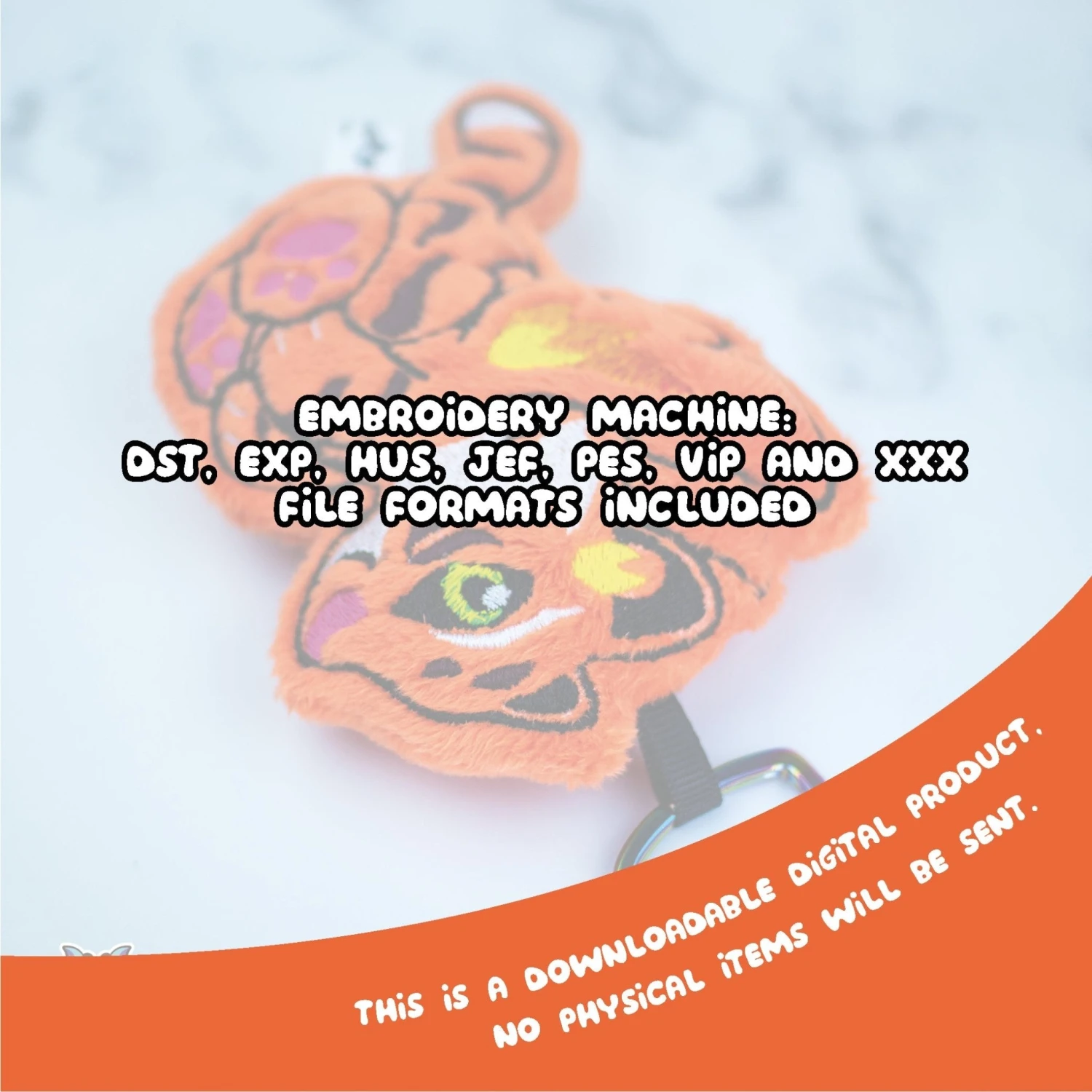 The cutest Fire Tiger as a lucky charm Keychain you can make with the help of this In the Hoop Embroidery Pattern!