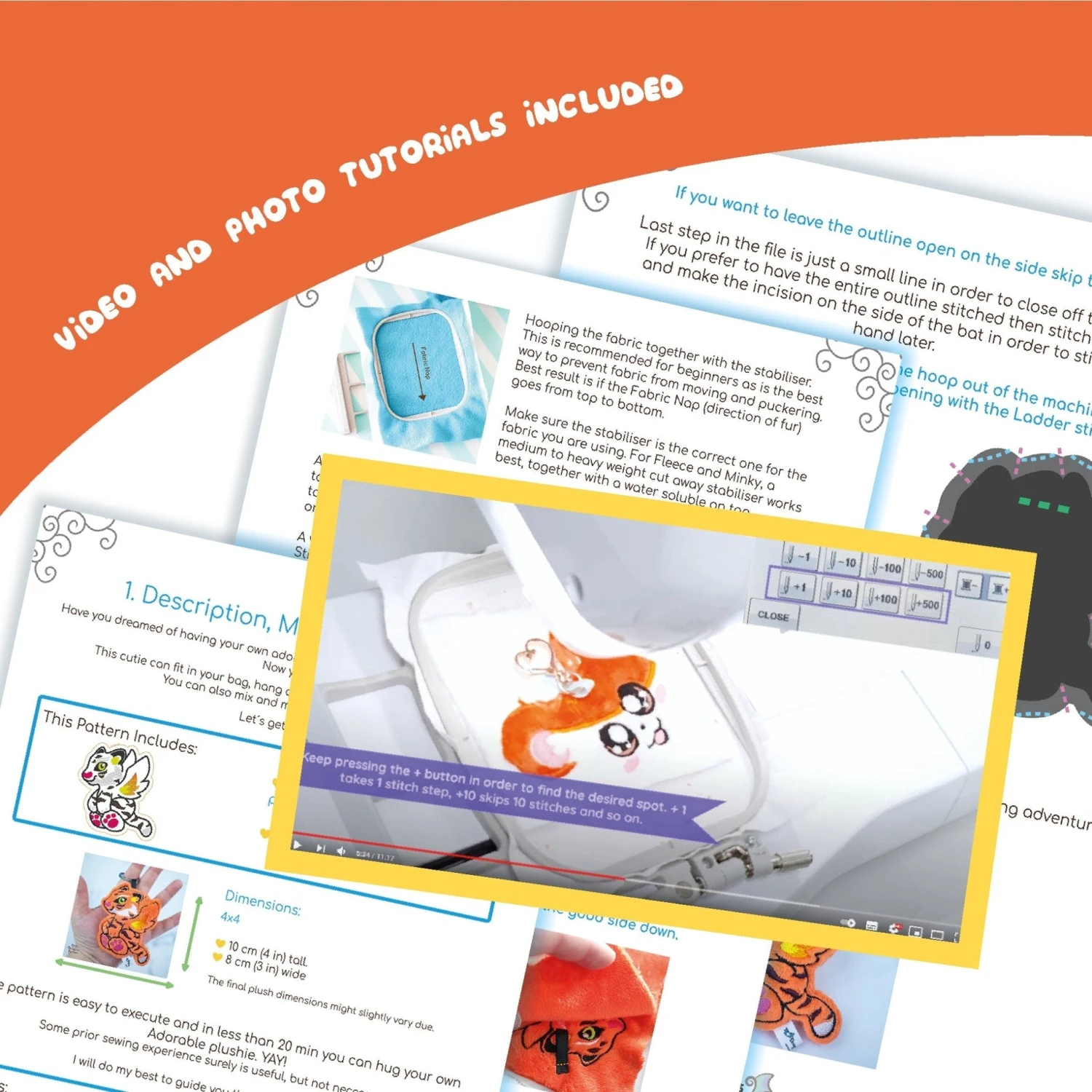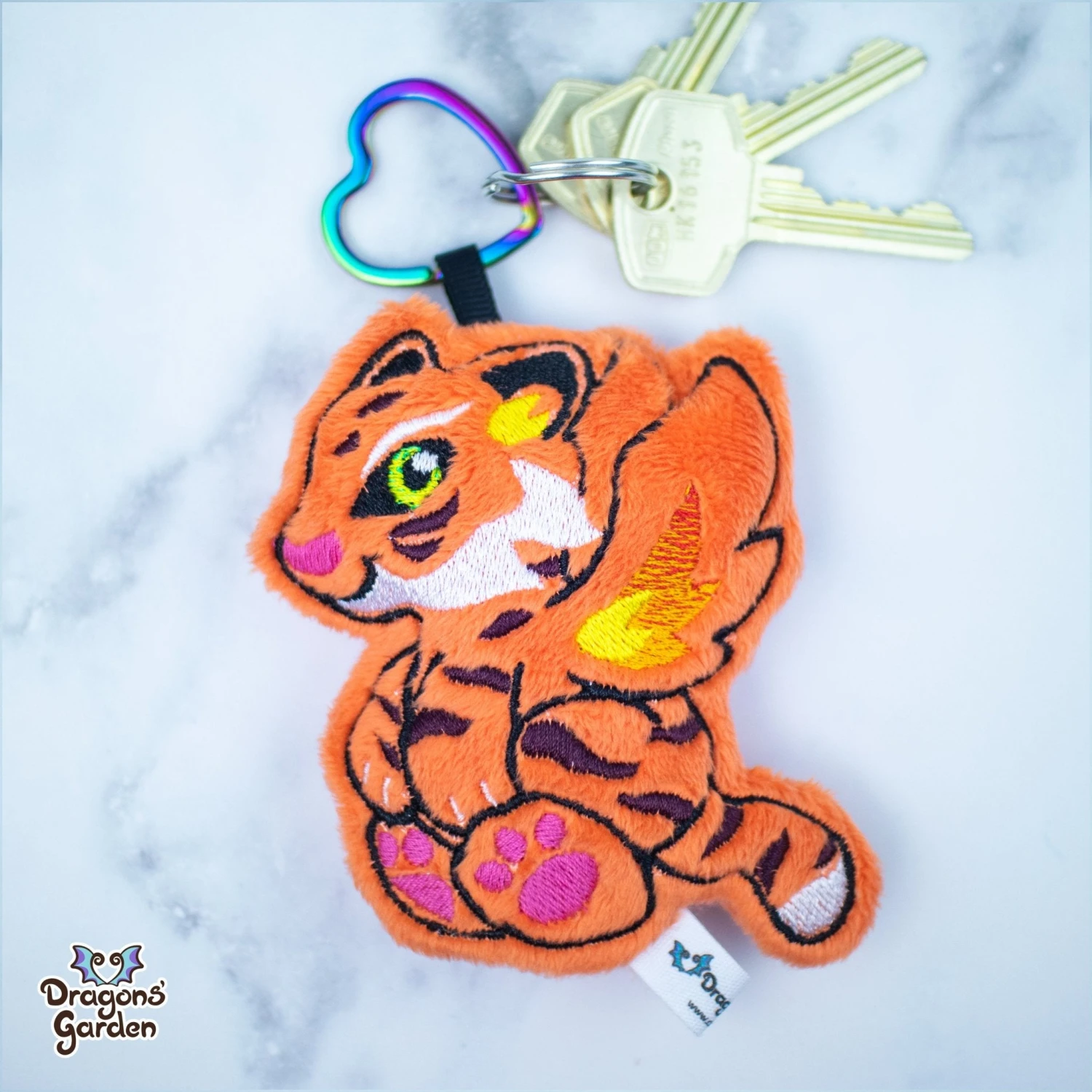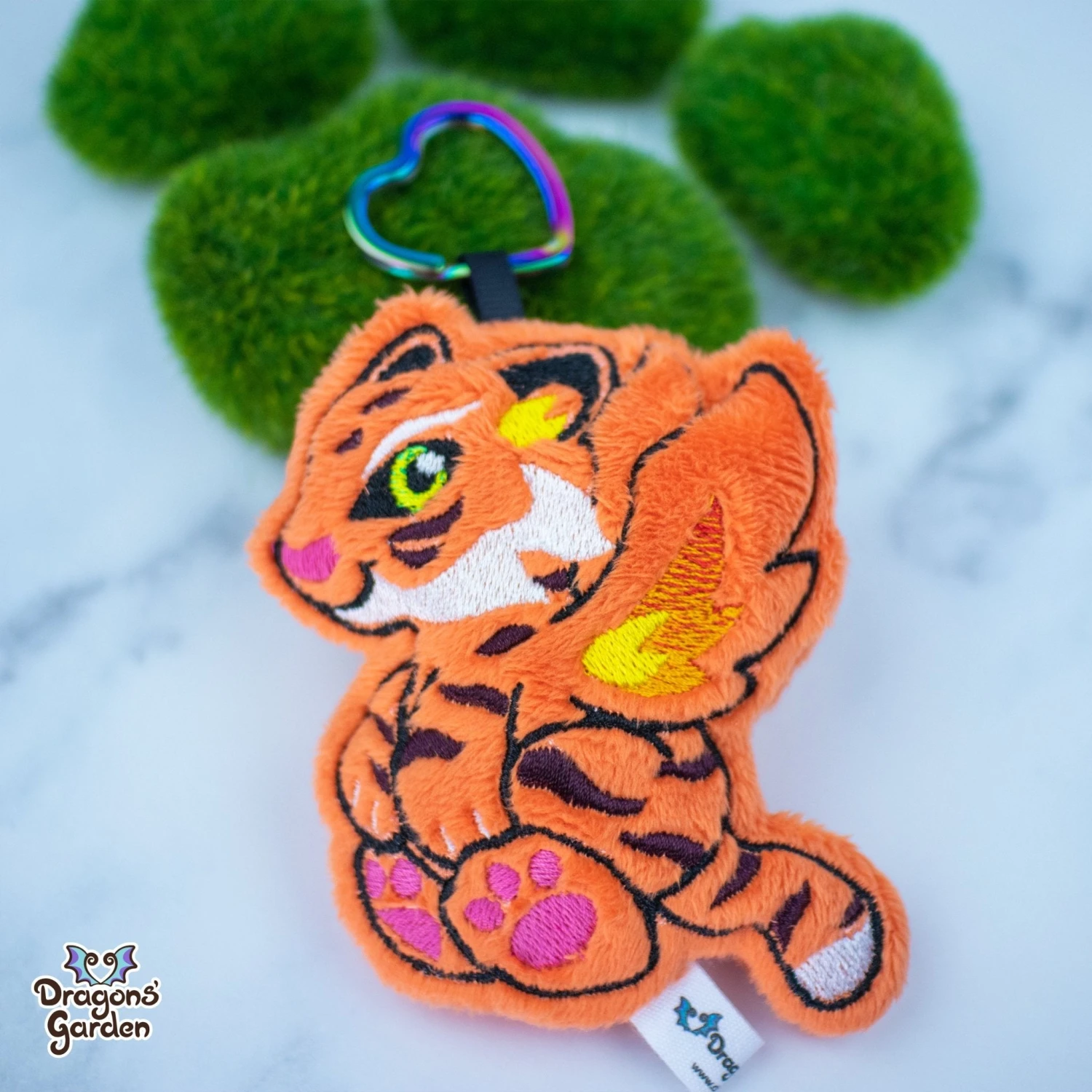 The cutest Fire Tiger as a lucky charm Keychain you can make with the help of this In the Hoop Embroidery Pattern!