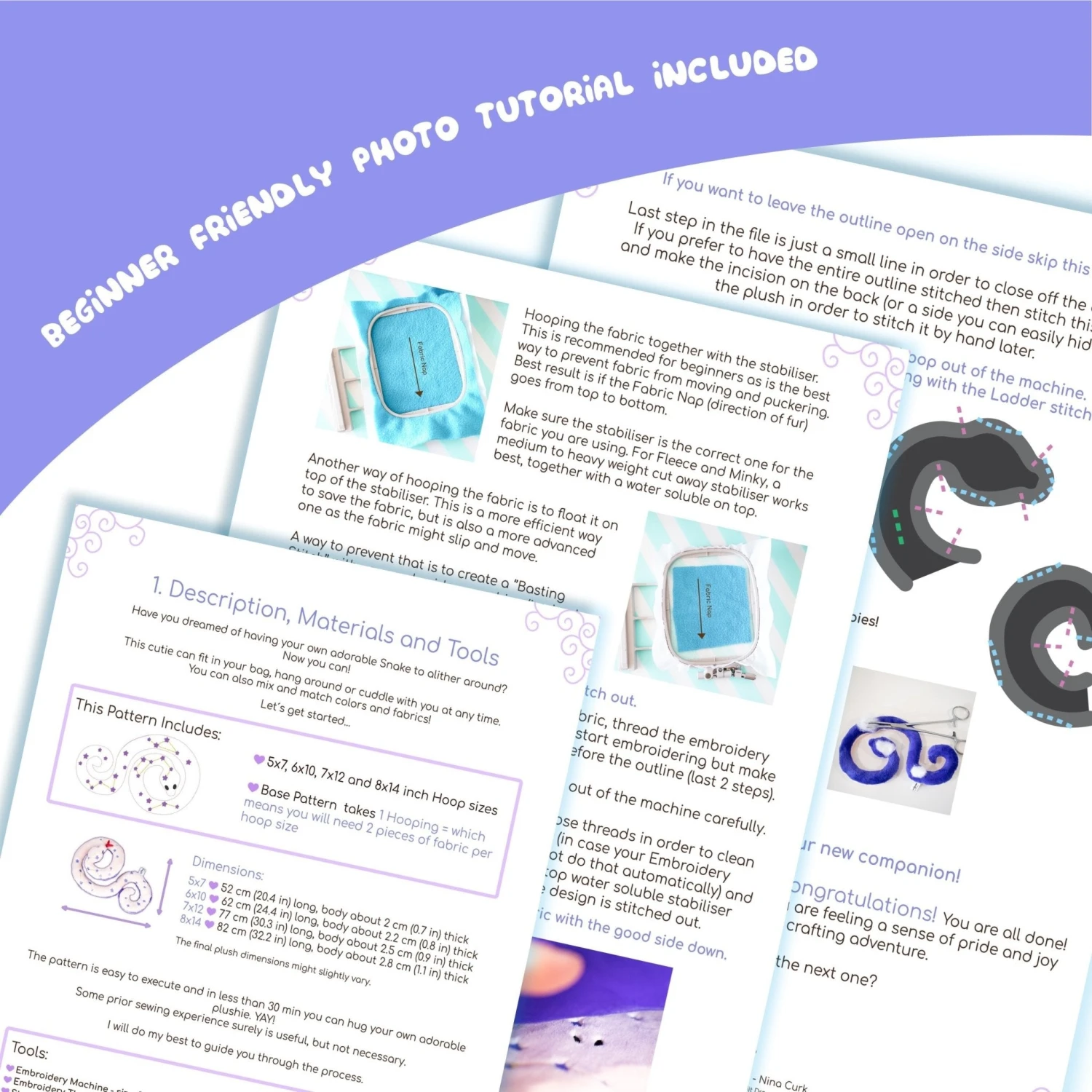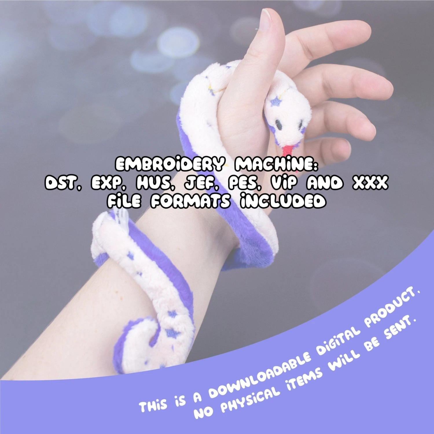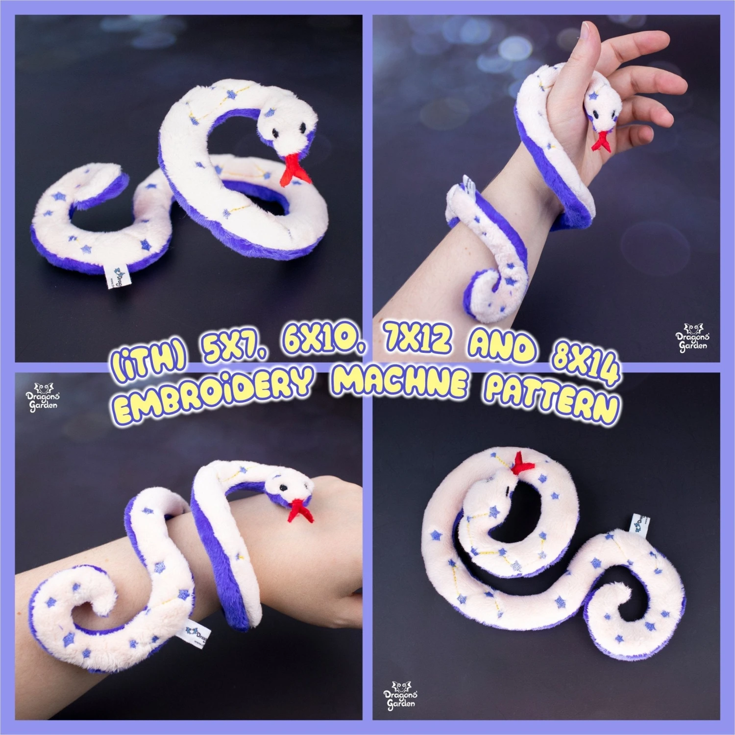 Incredibly Cute Snake plushie with stars Pattern, In the Hoop Embroidery Machine Pattern, based on Dragons’ Garden Original design. 🐍💜