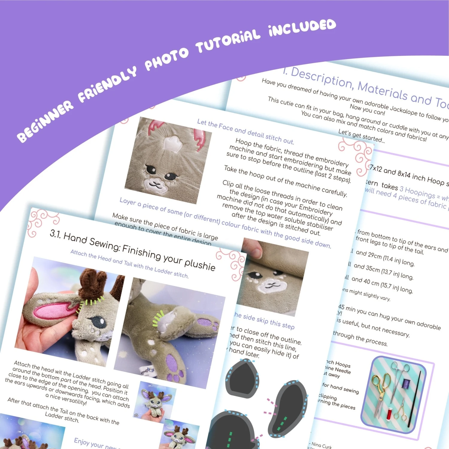 Incredibly Cute Jackalope as an In the Hoop Embroidery pattern! 🐰