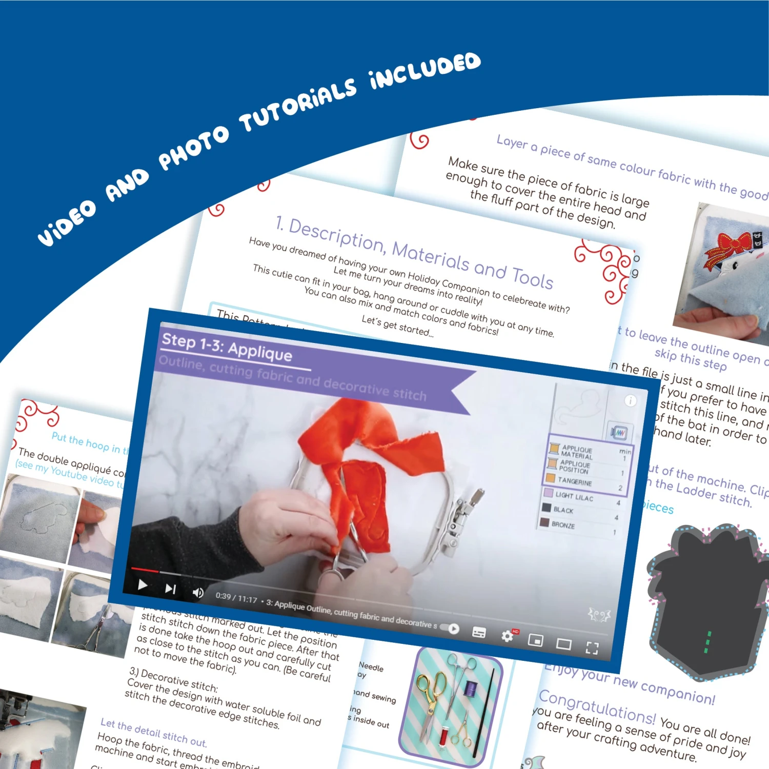 😻 Base Pattern takes 1 Hooping = which means you will need 2 pieces of fabric per hoop and a little extra for applique.