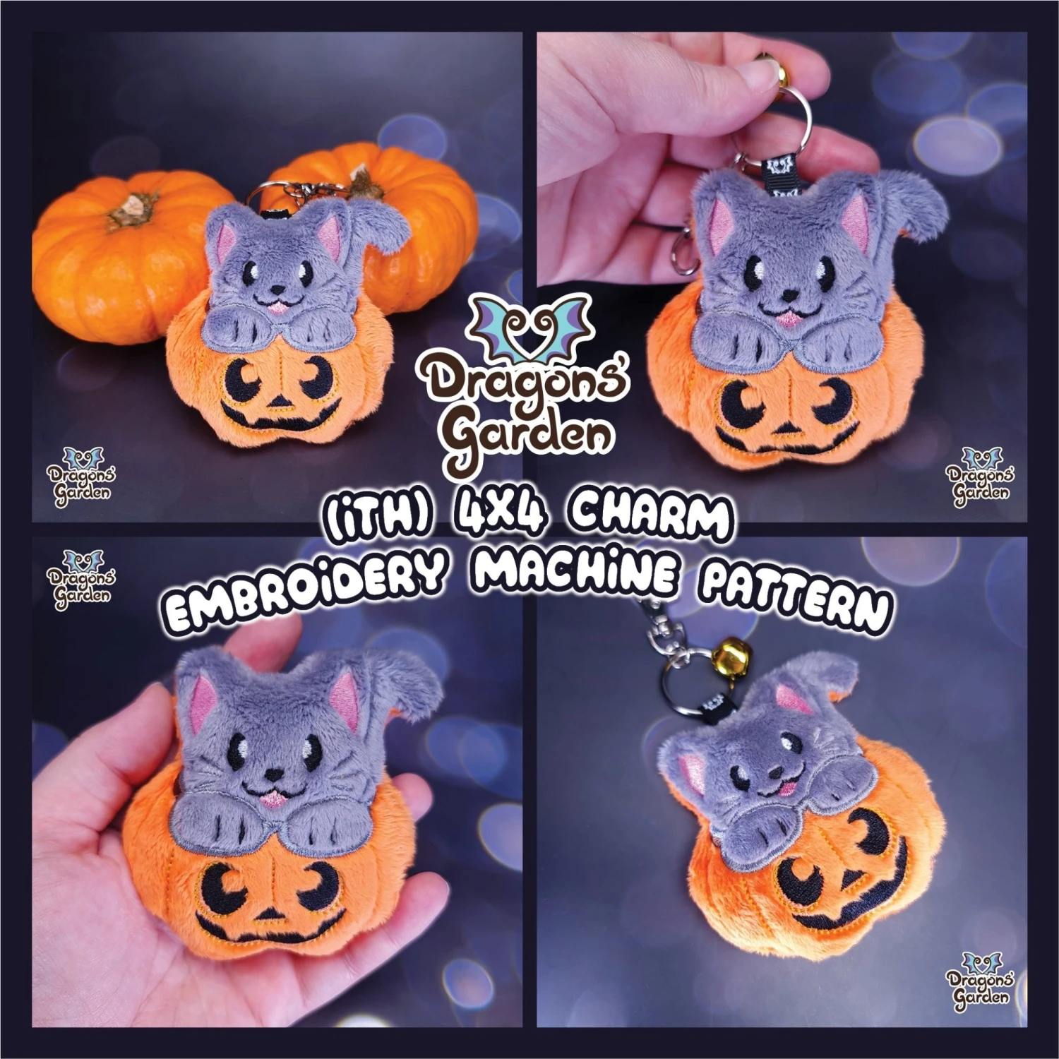 Adorable magical kitty has joined the Halloween collection as this adorable 4×4 In the Hoop Embroidery Machine Pattern to create your own Keychain or Charm! 🎃😻