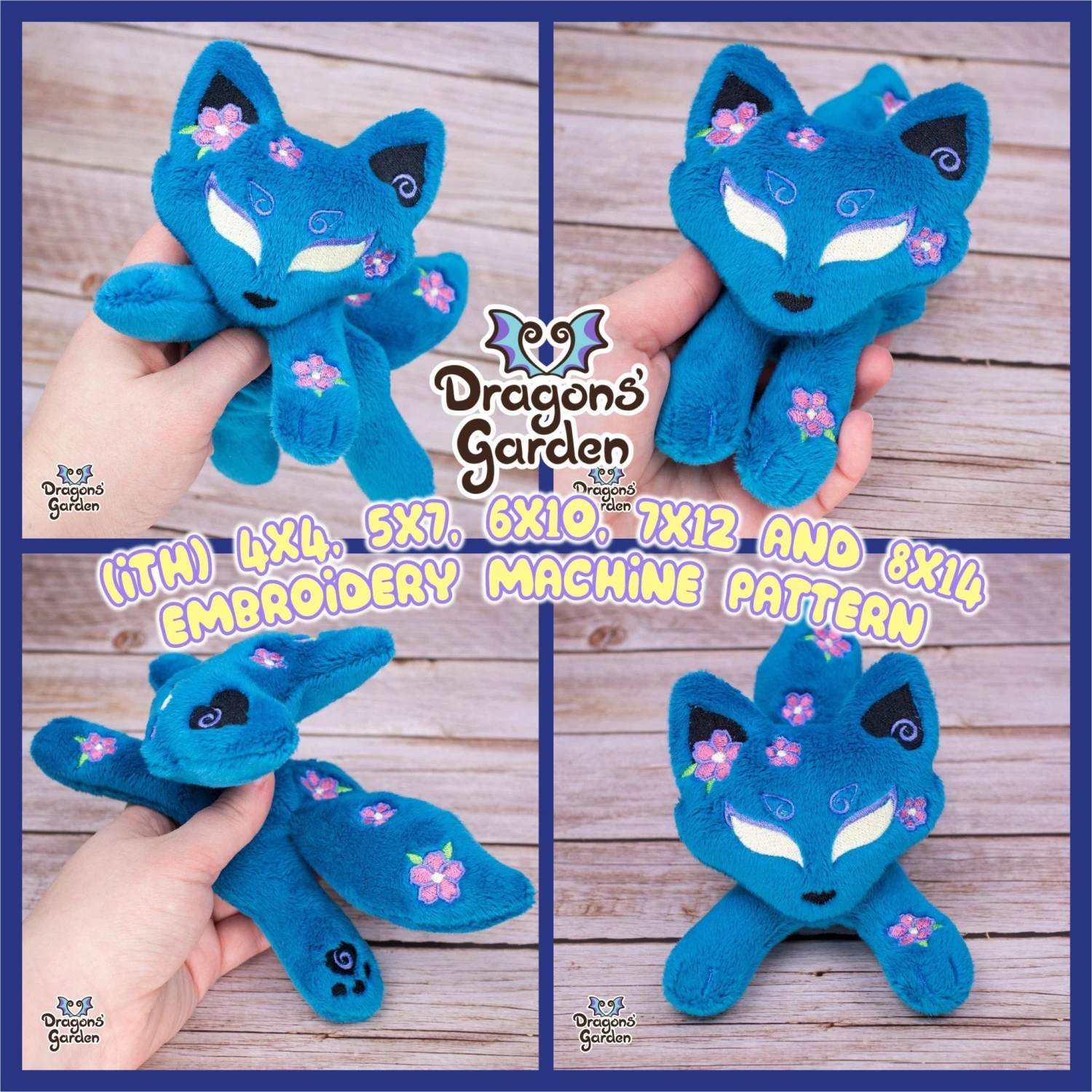 Sakura Kabuki Kitsune Spirit Fox, In the Hoop Embroidery Machine Pattern, based on Dragons’ Garden Original design. 🌸🌸🌸