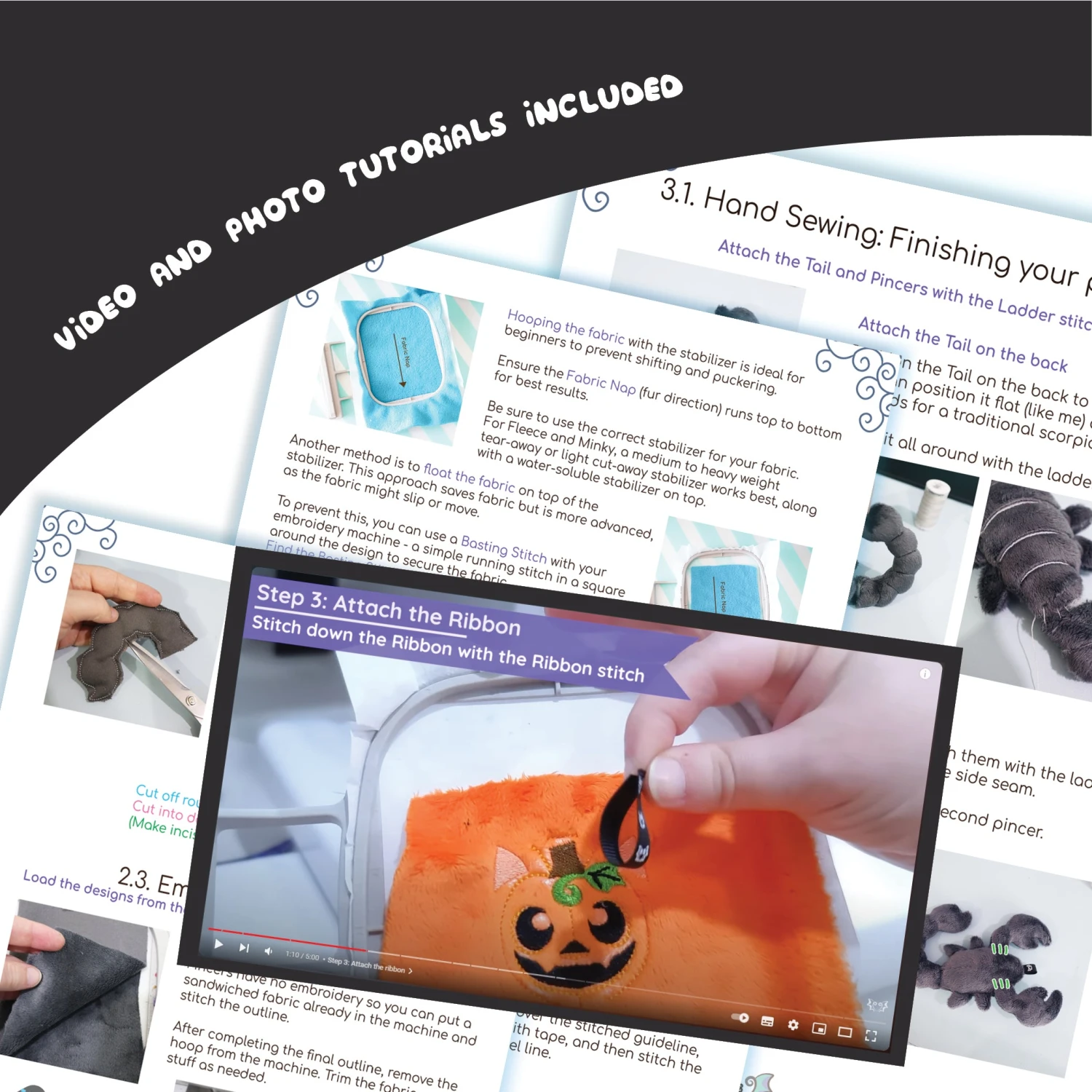 The pattern comes in 1 size, 4×4 hoops and DST, EXP, HUS, JEF, PES, VIP, VP3, XXX Embroidery files and requires a bit of hand sewing.