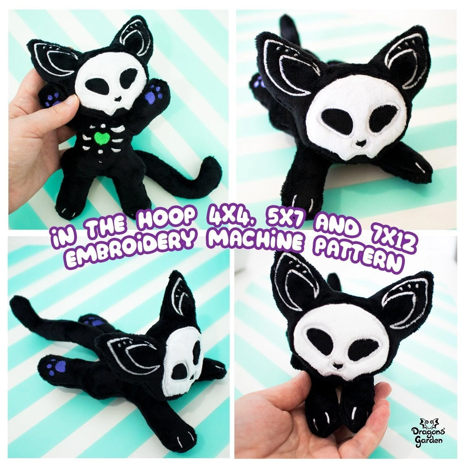 Super Spooky Skeleton Cat In the Hoop Embroidery Machine Pattern. With 3 sizes included, he is the perfect Halloween Companion.