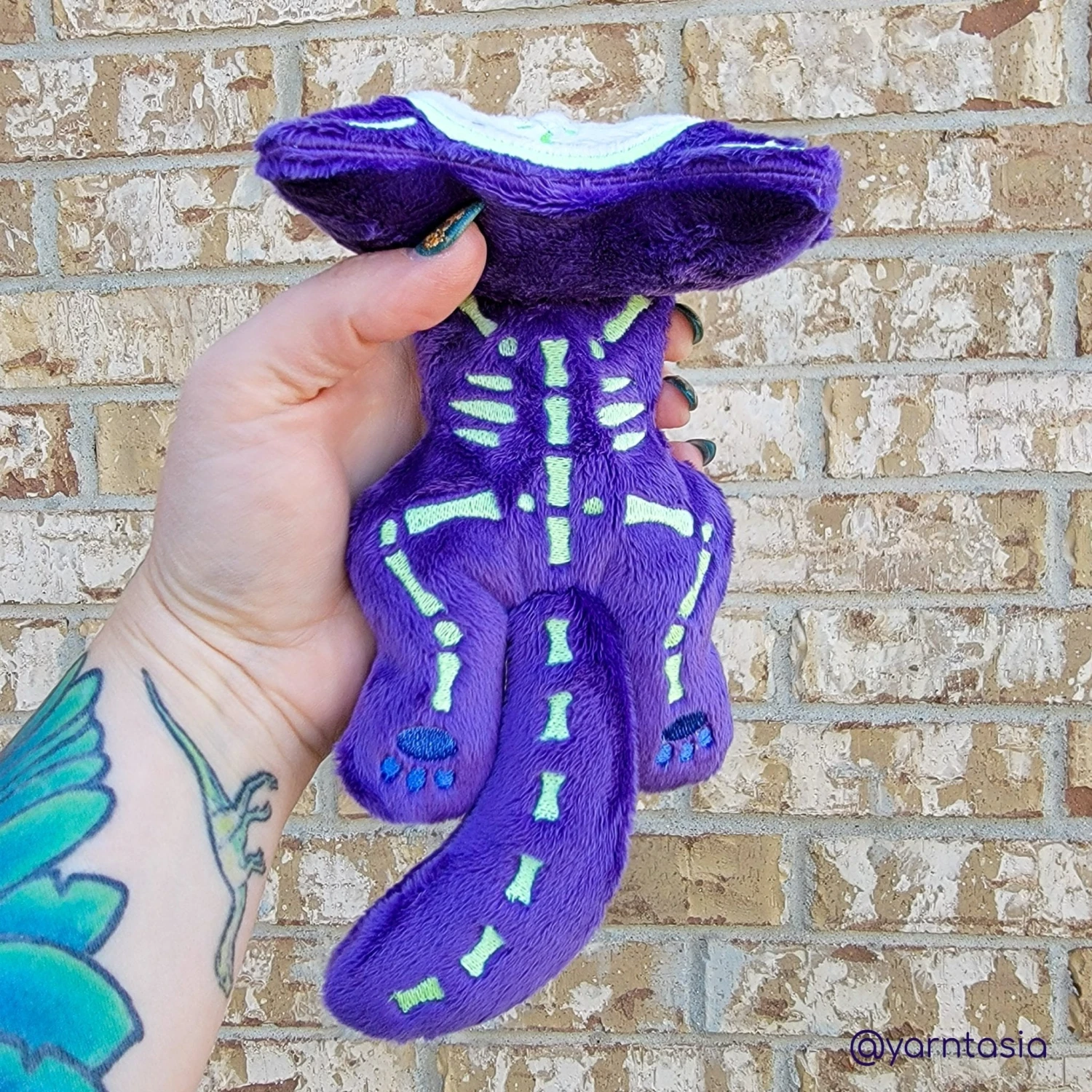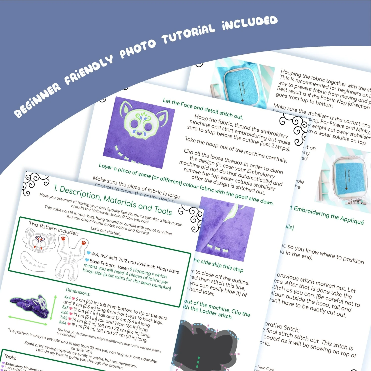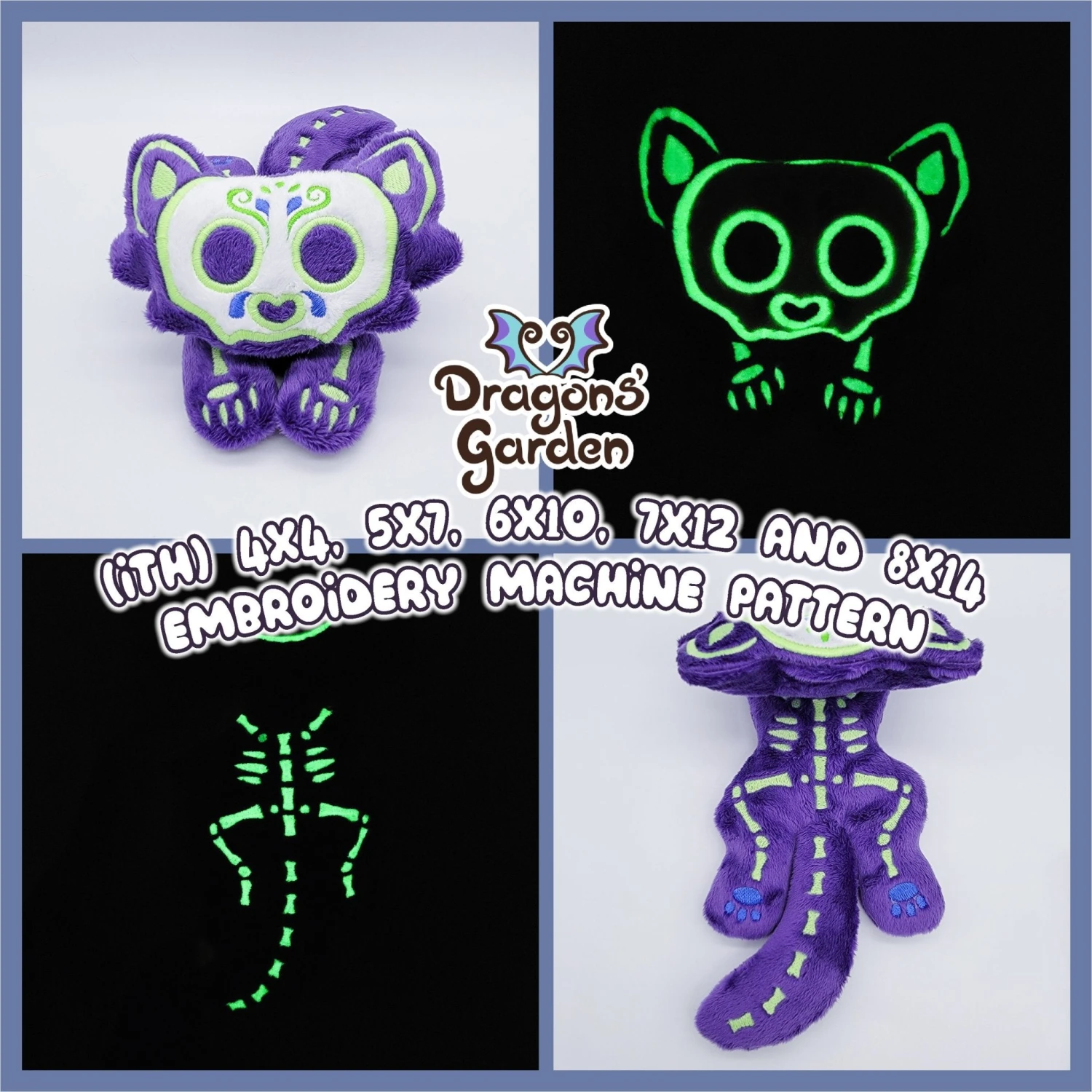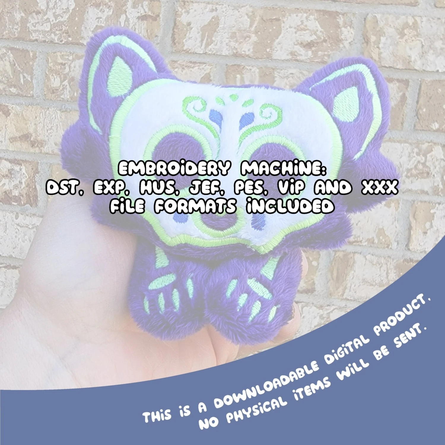 Incredibly spooky Skeleton Red Panda plushie, In the Hoop Embroidery Machine Pattern, based on Dragons’ Garden Original design. ☠💜