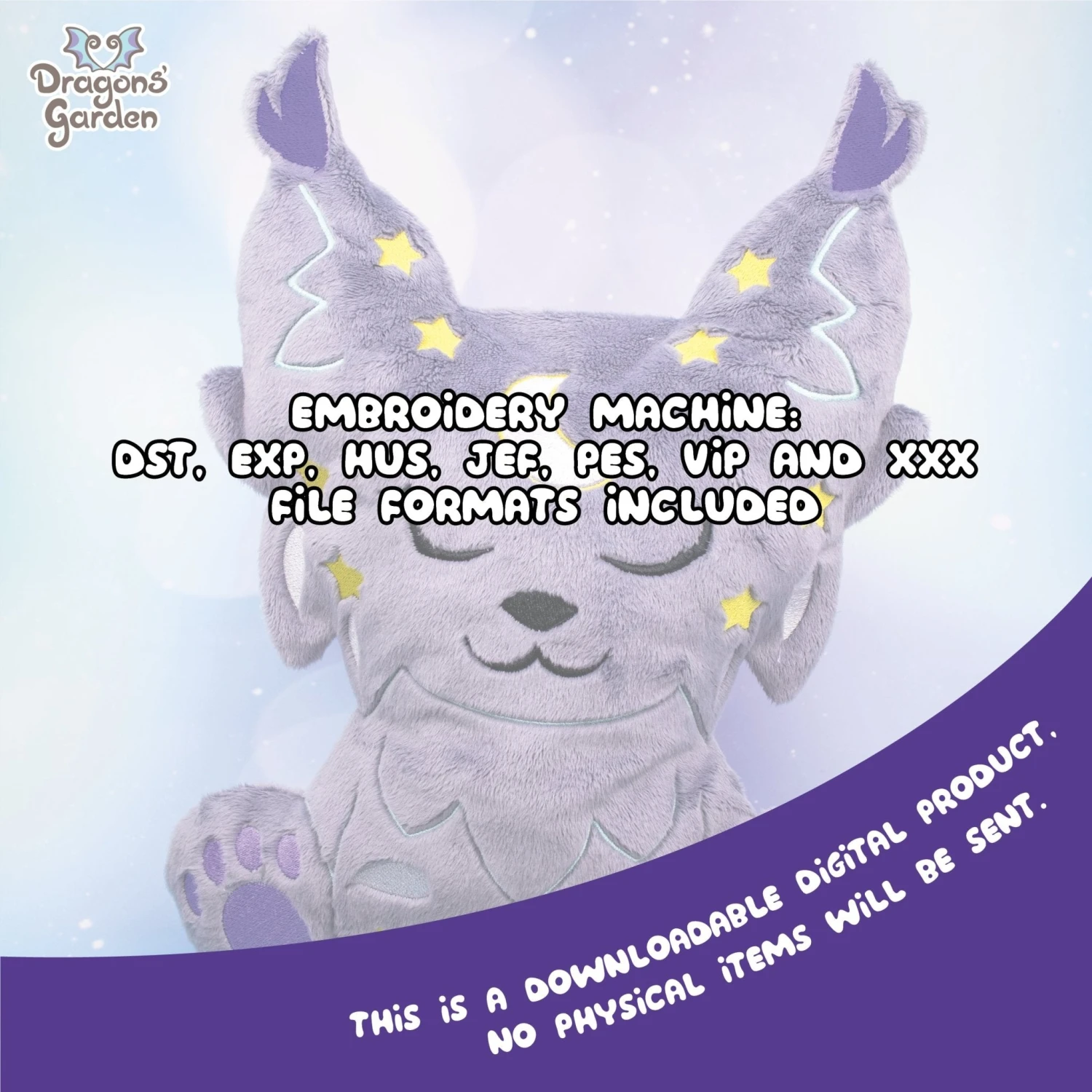 Incredibly Cute Sleepy Lynx Pillow Pattern sprinkled with Stars, In the Hoop Embroidery Machine Pattern, based on Dragons’ Garden Original design. ⭐🌙