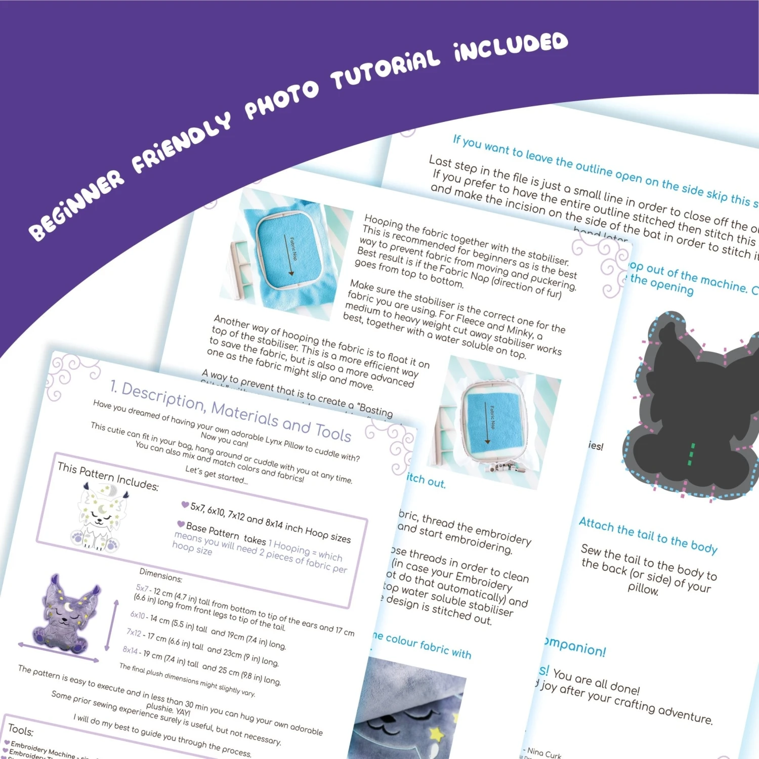 Includes a Step by Step Tutorial guide for embroidery, all with pictures and Color Thread Guide.