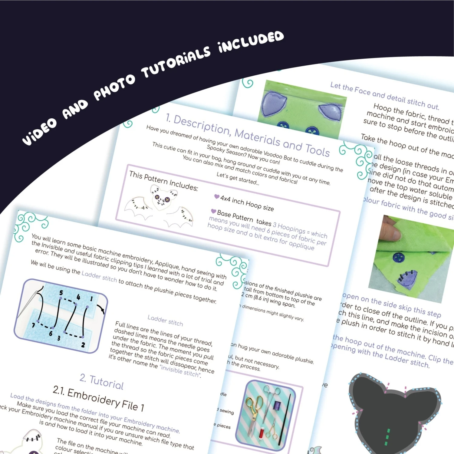 Scruffy Voodoo Bats also known as Batkins in the form of 4×4 In the Hoop Embroidery Machine Pattern to bring out your creativity. 🦇🎃🦇
