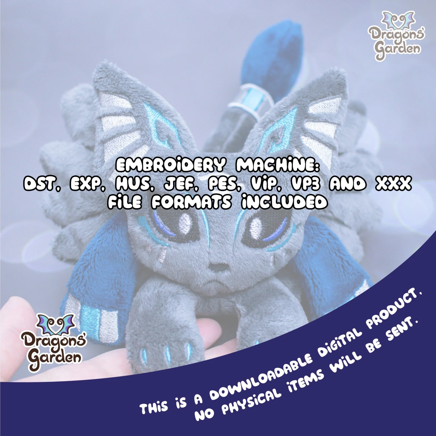 Incredibly Elegant Winged Sphinx, In the Hoop Embroidery Machine Pattern, based on Dragons’ Garden Original design. 💙🖤💙