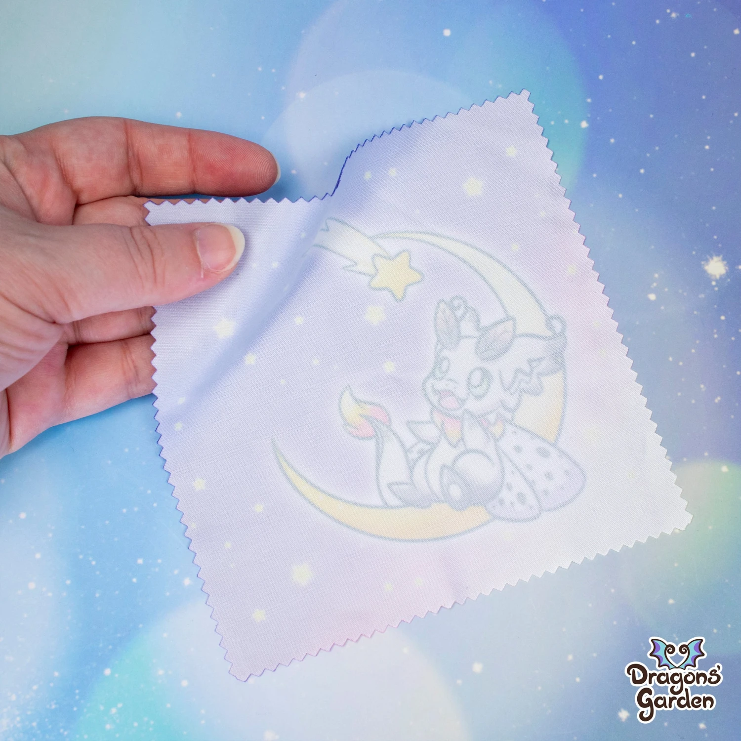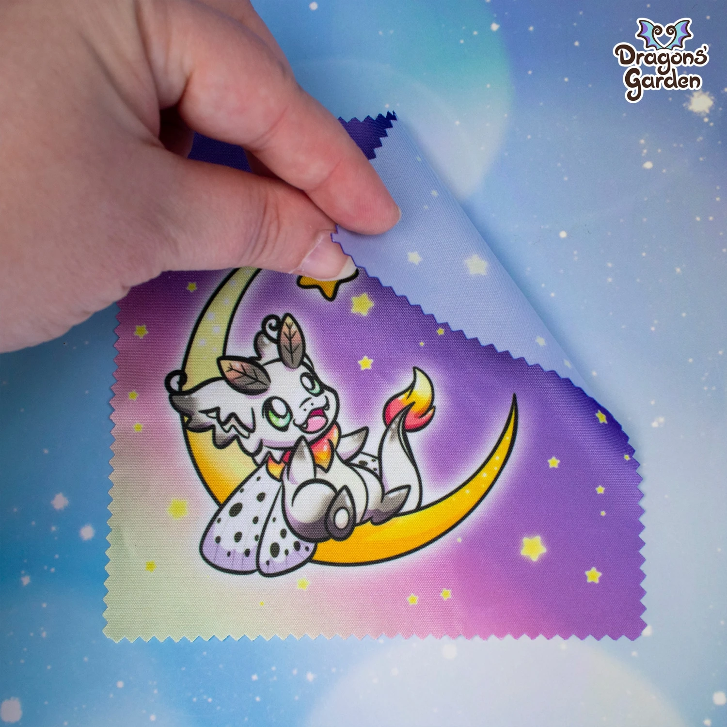 Little Dragon fluttered around the glowing moon, but his wings picked up moon dust along the way. Luckily, he had a Microfiber cloth close by to keep them sparkling.