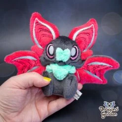 Small Fuchsia And Mint Sitting Bat Plushie(Small Fuchsia And Azure Sitting Bat Plushie)