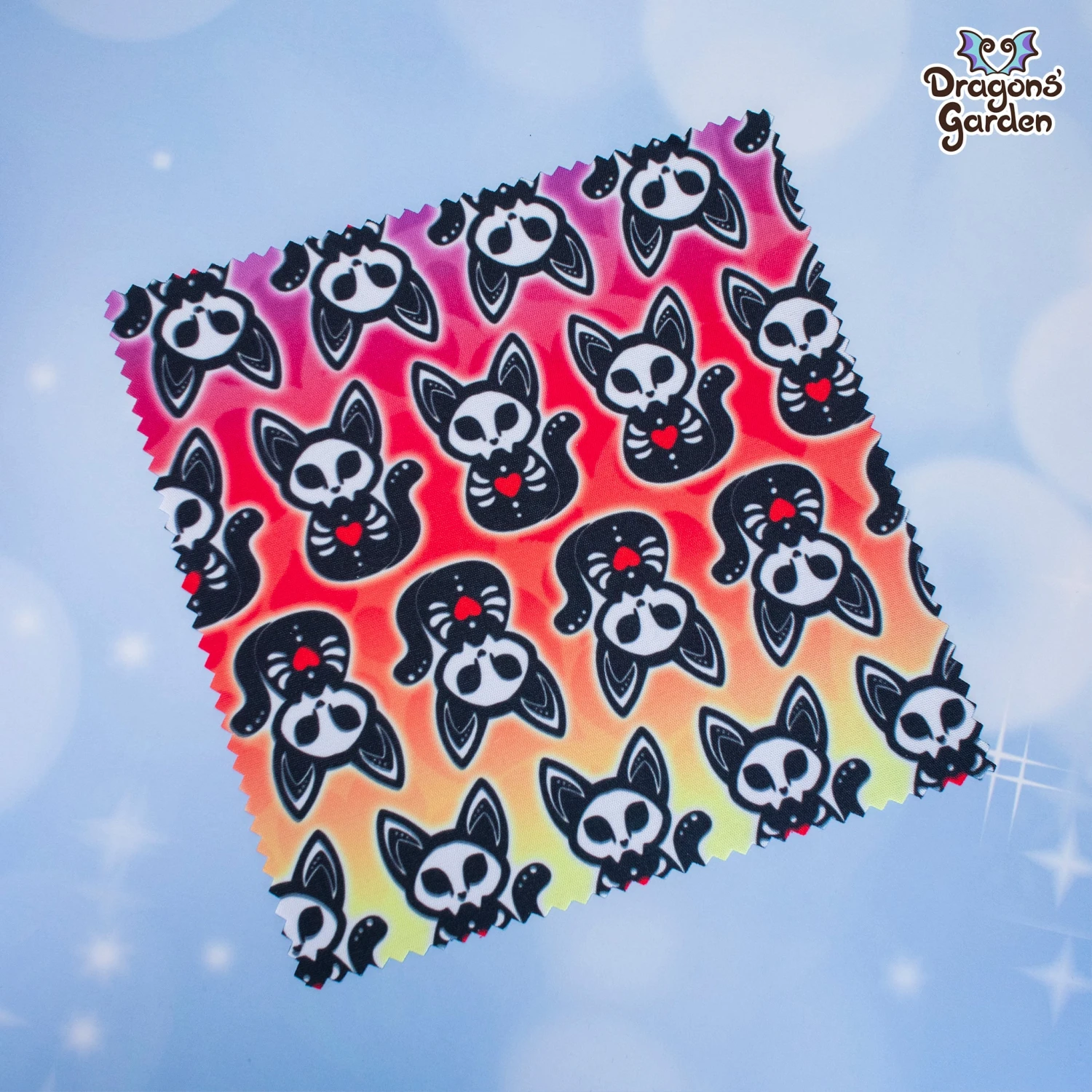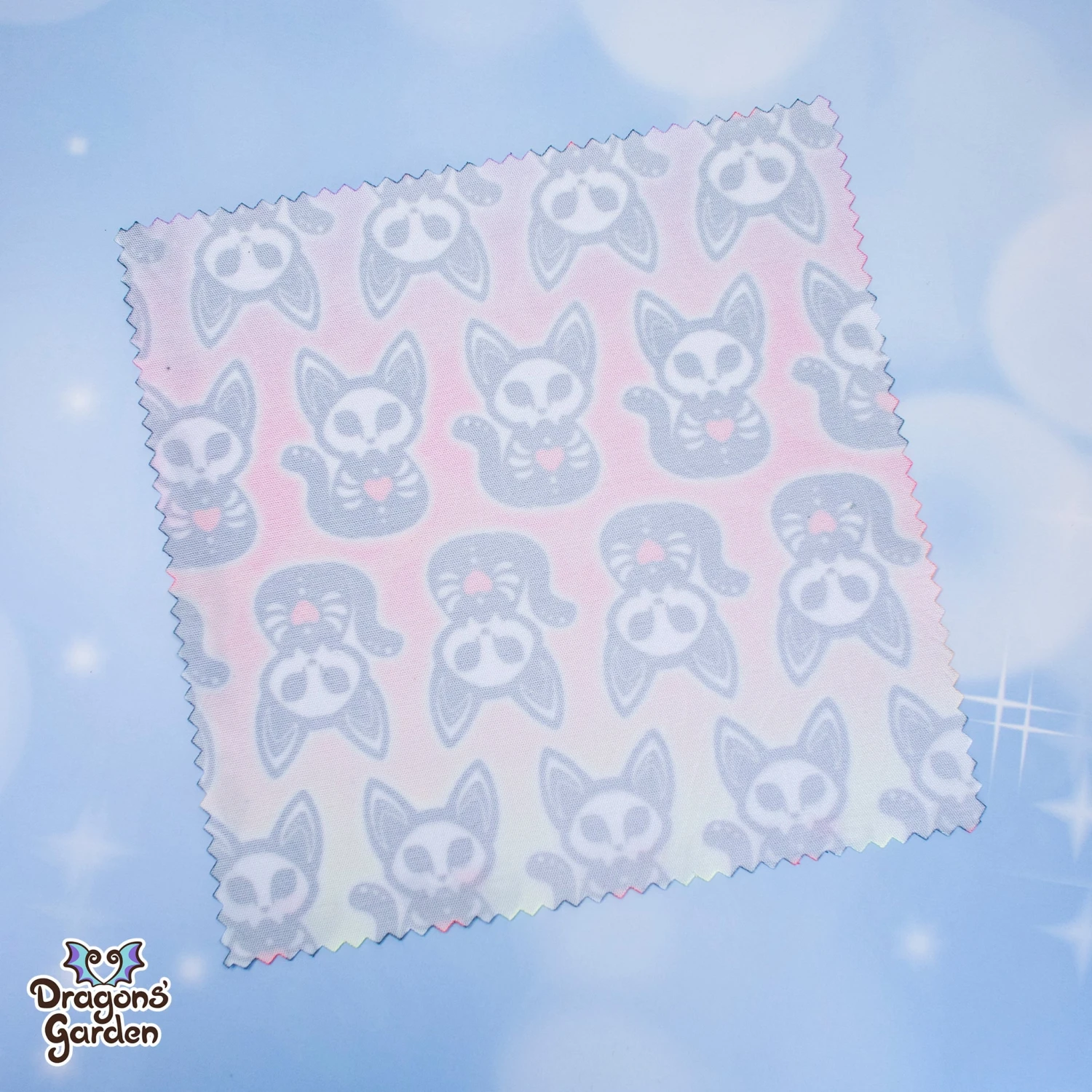 Skeleton Kitty wanted to polish his skeleton so he will be ready to glow during Halloween. Luckily he had a Micro-Fiber cloth close by.
