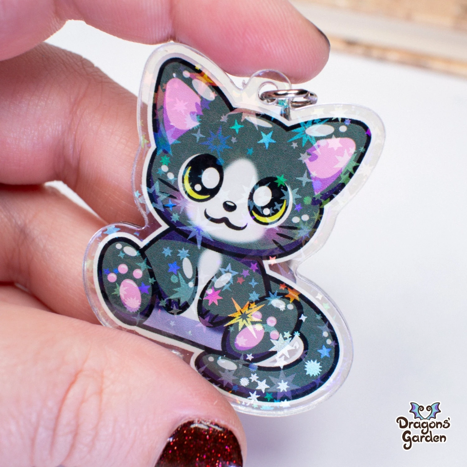 Tuxedo Kitten | Holographic Acrylic Keychain(Tuxedo Kitten Holographic Acrylic Keychain)